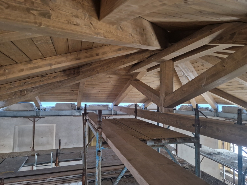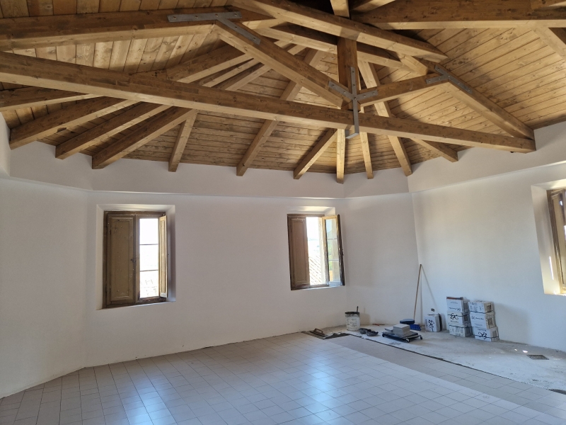 Restauro del Teatrino parrocchiale di Ortezzano (FM) con intervento di rafforzamento locale e rifacimento della copertura in legno a padiglione
